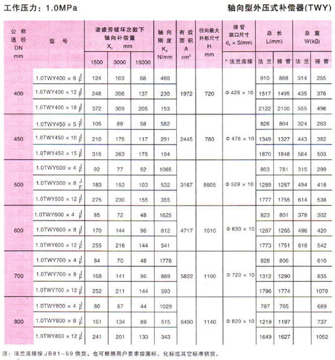軸向型外壓式波紋補償器(TWY)參數4
