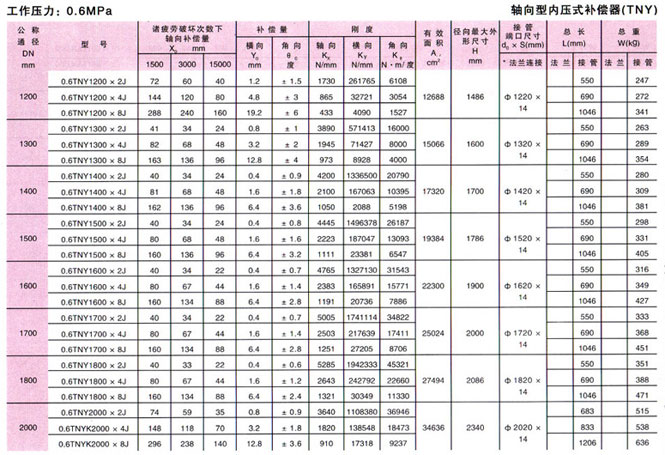 軸向型內(nèi)壓式波紋補(bǔ)償器(TNY)參數(shù)7