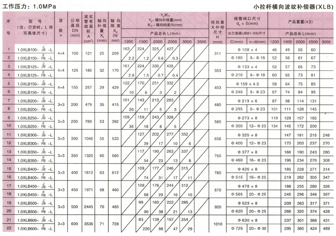 小拉桿橫向波紋補償器(XLB型)產(chǎn)品參數(shù)3