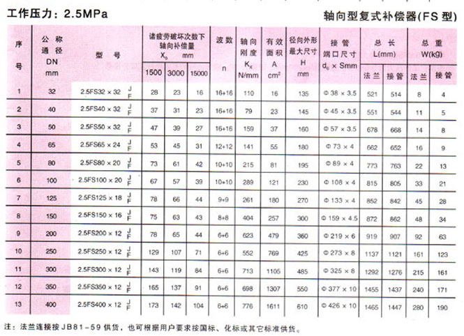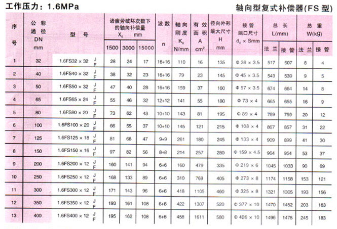 軸向型復式波紋補償器(FS型)參數2