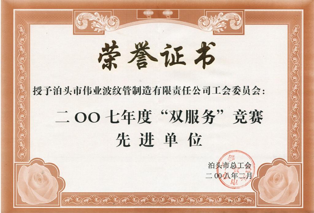 河北偉業(yè)波紋管公司雖然榮獲了許多的榮譽和獎項,但是我們深知這些榮譽和獎項是客戶給予河北偉業(yè)公司的信賴和支持,公司領(lǐng)導(dǎo)經(jīng)常教育我們面對榮譽要不驕不躁,時刻把客戶放在_位,嚴把質(zhì)量關(guān)。相信河北偉業(yè)波紋管公司在這樣的領(lǐng)導(dǎo)班子帶領(lǐng)下_會邁向新的臺階。